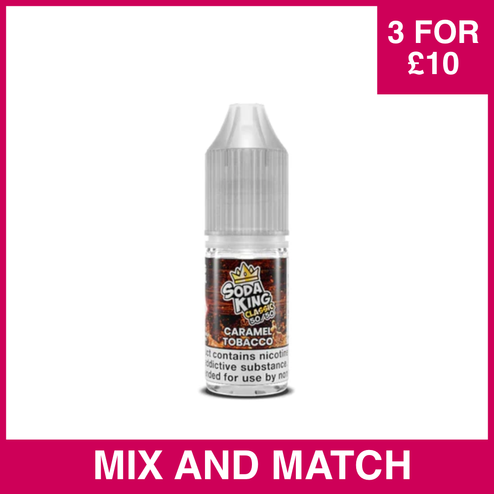 Soda King's Classic Caramel Tobacco Shortfill E-Liquid is a decadent concoction of velvety tobacco and luscious caramel. The tobacco essence is expertly blended to produce a mellow yet full-bodied profile, while the caramel note adds a touch of opulence, harmoniously balancing the two flavours. This e-liquid is a true masterpiece of Soda King, designed to provide you with an unparalleled vaping experience, delivering a harmonious and rich tobacco taste that is sweet to the senses. Choose this premium blend for a satisfying and luxurious vape.